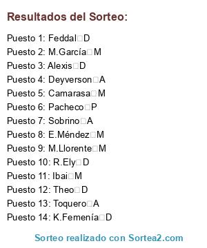 Resultados del sorteo: