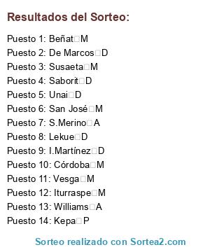 Lista de participantes: Beñat M, Córdoba M, De Marcos D, I.Martínez D, Iturraspe M, Kepa P, Lekue D, S.Merino A, Saborit D, San José M, Susaeta M, Unai D, Vesga M, Williams A.
