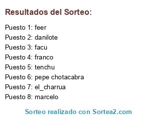Lista de participantes: facu, tenchu, feer, pepe chotacabra, el_charrua, danilote, marcelo, franco.
