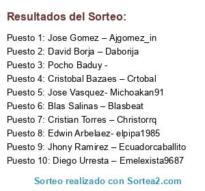 Lista de participantes: Jhony Ramirez – Ecuadorcaballito, David Borja – Daborija, Jose Vasquez- Michoakan91, Diego Urresta – Emelexista9687, Jose Gomez – Ajgomez_in, Cristian Torres – Christorrq, Blas Salinas – Blasbeat, Edwin Arbelaez- elpipa1985, Cristobal Bazaes – Crtobal, Pocho Baduy -.