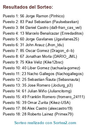 - Puesto 15: 66 Marlon Lopez (Marlinipe95)