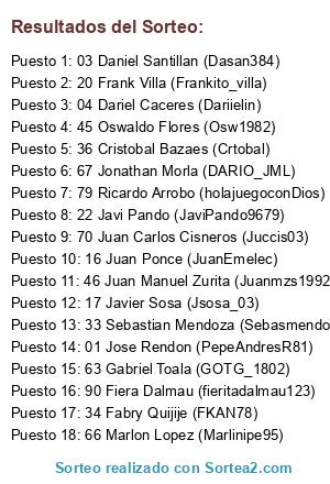 Resultados del sorteo: