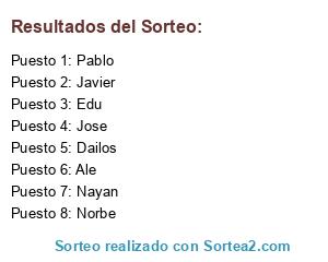 Lista de participantes: Javier, Dailos, Norbe, Nayan, Ale, Edu, Pablo, Jose.