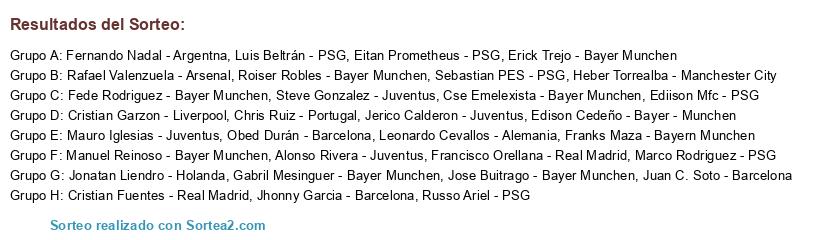 Lista de participantes: Roiser Robles - Bayer Munchen, Rafael Valenzuela - Arsenal, Cristian Fuentes - Real Madrid, Cse Emelexista - Bayer Munchen, Jose Buitrago - Bayer Munchen, Obed Durán - Barcelona, Luis Beltrán - PSG, Mauro Iglesias - Juventus, Manuel Reinoso - Bayer Munchen, Russo Ariel - PSG, Edison Cedeño - Bayer - Munchen, Chris Ruiz - Portugal, Fede Rodriguez - Bayer Munchen, Franks Maza - Bayern Munchen, Jhonny Garcia - Barcelona, Heber Torrealba - Manchester City, Jerico Calderon - Juventus, Francisco Orellana - Real Madrid, Juan C. Soto - Barcelona, Fernando Nadal - Argentna, Cristian Garzon - Liverpool, Alonso Rivera - Juventus, Eitan Prometheus - PSG, Gabril Mesinguer - Bayer Munchen, Steve Gonzalez - Juventus, Leonardo Cevallos - Alemania, Jonatan Liendro - Holanda, Erick Trejo - Bayer Munchen, Ediison Mfc - PSG, Sebastian PES - PSG, Marco Rodriguez - PSG.