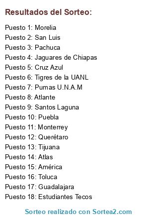 Resultados del sorteo: