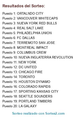 Lista de participantes: COLUMBUS CREW, DC UNITED, NUEVA YORK RED BULLS, NUEVA INGLATERRA REVOLUTION, CHICAGO FIRE, COLORADO RAPIDS, FC DALLAS, SPORTING KANSAS CITY, LA GALAXY, HOUSTON DYNAMO, VANCOUVER WHITECAPS, REAL SALT LAKE, MONTREAL IMPACT, PORTLAND TIMBERS, SEATTLE SOUNDERS, TORONTO, TERREMOTO SAN JOSE, PHILADELPHIA UNION, ORTALNDO CITY, NEW YORK.