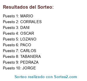 Lista de participantes: PACO, DANI, JORGE, MARIO, OSCAR, CARLOS, TABANERA, LOZANO, PEDRAZA, CORRALES.