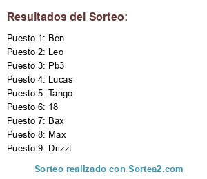 Lista de participantes: Drizzt, Lucas, Tango, Max, Pb3, Ben, Bax, Leo, 18.