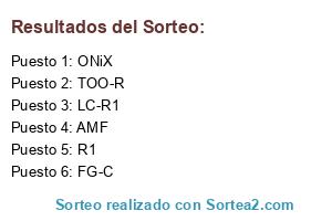 Lista de participantes: AMF, LC-R1, TOO-R, R1, FG-C, ONiX.
