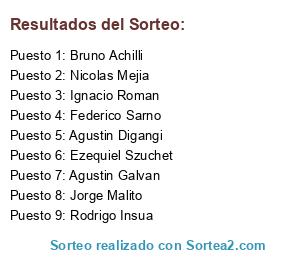 Lista de participantes: Nicolas Mejia, Rodrigo Insua, Jorge Malito, Bruno Achilli, Agustin Digangi, Agustin Galvan, Federico Sarno, Ignacio Roman, Ezequiel Szuchet.