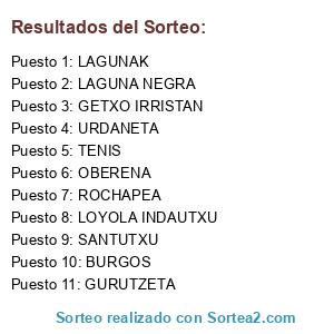 Lista de participantes: SANTUTXU, LAGUNAK, ROCHAPEA, TENIS, GETXO IRRISTAN, URDANETA, BURGOS, GURUTZETA, OBERENA, LAGUNA NEGRA, LOYOLA INDAUTXU.