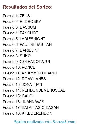 Lista de participantes: PONCE, GALO, KIKEDERENDON, SUKO, JONATHAN, AZULYMILLONARIO, DASSUM, DARIELIN, GOLEADORAZUL, JUANNAVAS, PEDROSKY, ZEUS, RGAVILANES, BATALLAS O DASAN, PANCHOT, RENDONDEMENOSCAL, LADIESNIGHT, PAUL SEBASTIAN.