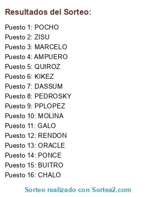 Lista de participantes: PONCE, GALO, RENDON-DE-MENOSCAL, TAMARIZ, COPPIANO, PAULSEBASTIAN, EMILIO NAVAS, JUANSE NAVAS, SUKOO, DASSUM, SANCOCHO, ACHE, NOWAK, ROBERTO GAVILANES, DARIELIN, GAVILANES, ZISU, LADYNIGHT.