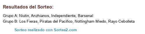 Lista de participantes: Piratas del Pacifico, Barsenal, Los Fieras, Rayo Cebolleta, Nottingham Miedo, Niutin, Anzhianos, Independiente.