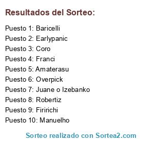 Lista de participantes: Manuelho, Earlypanic, Overpick, Firirichi, Franci, Amaterasu, Baricelli, Coro, Robertiz, Juane o Izebanko.