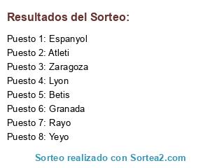 Lista de participantes: Granada, Betis, Espanyol, Rayo, Atleti, Yeyo, Zaragoza, Lyon.