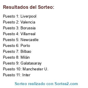 Lista de participantes: Inter, Bilbao, Valencia, Galatasaray, Manchester U., Liverpool, Borussia, Newcastle, Milán, Porto, Villarreal.