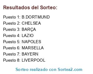 Lista de participantes: LIVERPOOL, LAZIO, CHELSEA, BARÇA, NAPOLES, MARSELLA, BAYERN, B.DORTMUND.