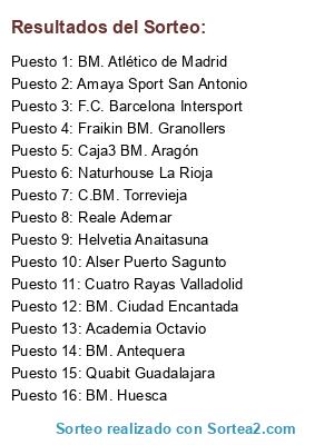 Lista de participantes: BM. Ciudad Encantada, Helvetia Anaitasuna, Fraikin BM. Granollers, Caja3 BM. Aragón, Reale Ademar, BM. Antequera, Quabit Guadalajara, Alser Puerto Sagunto, Cuatro Rayas Valladolid, Naturhouse La Rioja, C.BM. Torrevieja, BM. Huesca, BM. Atlético de Madrid, Amaya Sport San Antonio, Academia Octavio, F.C. Barcelona Intersport.