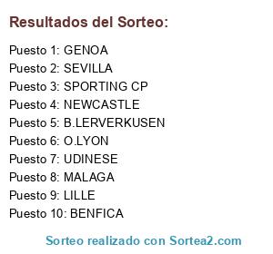 Lista de participantes: B.LERVERKUSEN, SPORTING CP, BENFICA, SEVILLA, MALAGA, LILLE, O.LYON, GENOA, UDINESE, NEWCASTLE.