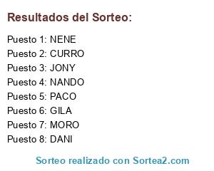 Lista de participantes: GILA, NENE, MORO, CURRO, JONY, DANI, NANDO, PACO.