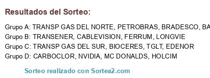 Lista de participantes: BARRICK GOLD, BIOCERES, BRADESCO, CABLEVISION, CARBOCLOR, EDENOR, FERRUM, HOLCIM, LONGVIE, MC DONALDS, NVIDIA, PETROBRAS, TGLT, TRANSENER, TRANSP GAS DEL NORTE, TRANSP GAS DEL SUR.