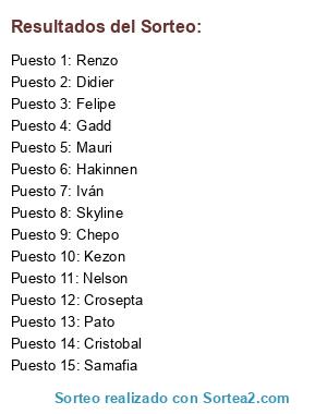 Lista de participantes: Kezon, Mauri, Skyline, Samafia, Chepo, Pato, Didier, Hakinnen, Cristobal, Gadd, Nelson, Iván, Crosepta, Felipe, Renzo.
