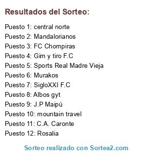 Lista de participantes: Mandalorianos, C.A. Caronte, Albos gyt, Sports Real Madre Vieja, FC Chompiras, mountain travel, J.P Maipú, central norte, Murakos, Rosalia, Gim y tiro F.C, SigloXXI F.C.
