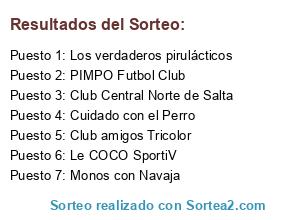 Lista de participantes: Club amigos Tricolor, Cuidado con el Perro, Club Central Norte de Salta, PIMPO Futbol Club, Le COCO SportiV, Monos con Navaja, Los verdaderos pirulácticos.