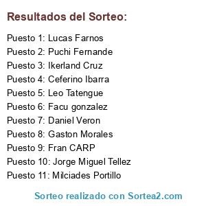 Lista de participantes: Milciades Portillo, Lucas Farnos, Gaston Morales, Daniel Veron, Ceferino Ibarra, Puchi Fernande, Jorge Miguel Tellez, Fran CARP, Leo Tatengue, Ikerland Cruz, Facu gonzalez.