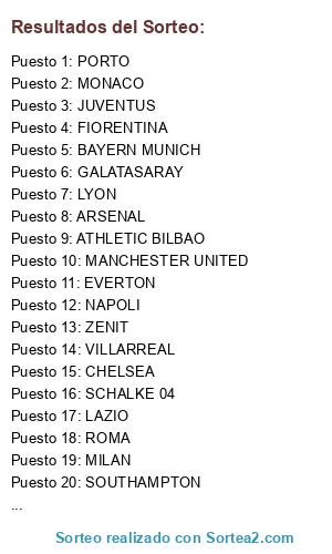 Resultados del sorteo: