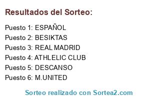 Lista de participantes: M.UNITED, BESIKTAS, REAL MADRID, ESPAÑOL, ATLETIC CLUB, DESCANSO.