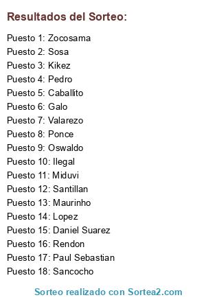 Lista de participantes: Pedro, Zocosama, Caballito, Maurinho, Ponce, Ilegal, Daniel Suarez, Paul Sebastian, Kikez, Santillan, Lopez, Rendon, Oswaldo, Sancocho, Miduvi, Valarezo, Galo, Sosa.