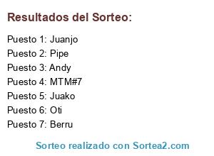 Lista de participantes: Juako, Andy, Juanjo, Oti, Pipe, Berru, MTM#7.