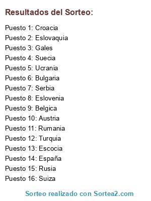 Lista de participantes: Rumania, Rusia, Escocia, Serbia, Eslovaquia, Eslovenia, España, Suecia, Suiza, Turquia, Ucrania, Gales, Austria, Belgica, Bulgaria, Croacia.