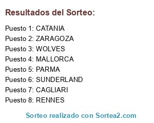 Lista de participantes: MALLORCA, ZARAGOZA, CAGLIARI, SUNDERLAND, RENNES, CATANIA, PARMA, WOLVES.