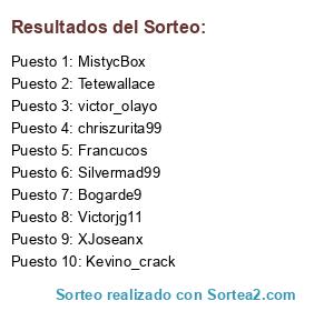 Lista de participantes: Tetewallace, Silvermad99, Bogarde9, XJoseanx, MistycBox, Victorjg11, Francucos, chriszurita99, victor_olayo, Kevino_crack.