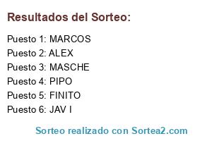 Lista de participantes: JAV I, PIPO, MARCOS, FINITO, MASCHE, ALEX.