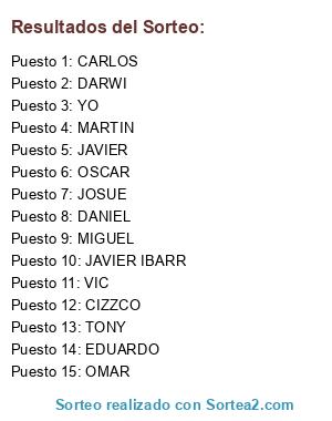 Lista de participantes: OMAR, TONY, YO, CIZZCO, DANIEL, EDUARDO, DARWI, JAVIER, MARTIN, MIGUEL, CARLOS, JAVIER IBARR, JOSUE, VIC, OSCAR.