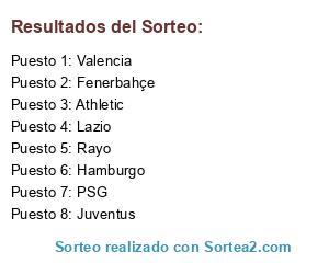 Lista de participantes: Hamburgo, Juventus, Fenerbahçe, Athletic, Rayo, PSG, Lazio, Valencia.