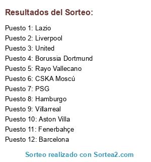 Lista de participantes: Rayo Vallecano, Barcelona, Liverpool, Fenerbahçe, PSG, United, Borussia Dortmund, Lazio, Aston Villa, Hamburgo, Villarreal, CSKA Moscú.