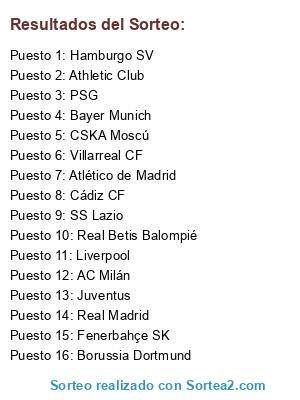 Resultados del sorteo: