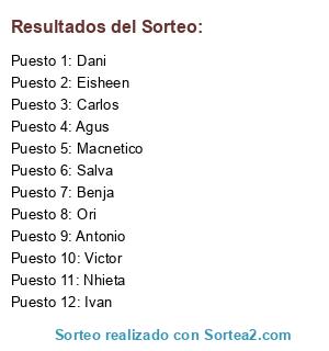Lista de participantes: Agus, Macnetico, Ori, Victor, Carlos, Antonio, Nhieta, Eisheen, Benja, Ivan, Dani, Salva.