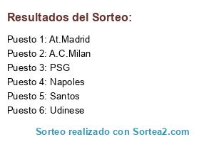 Lista de participantes: Manchester City, A.C.Milan, At.Madrid, Liverpool, Napoles, Oporto, Dortmund, Schalke 04, PSG, Udinese, Newcastle, Santos.