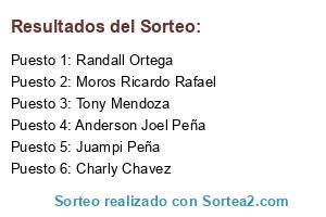 Lista de participantes: Randall Ortega, Charly Chavez, Moros Ricardo Rafael, Juampi Peña, Anderson Joel Peña, Tony Mendoza.