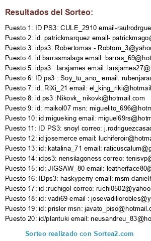 - Puesto 6: ID ps3 : Soy_tu_ano_ email. rubenjararuiz@hotmail.com
