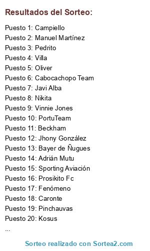 Lista de participantes: Bayer de Ñugues, Jhony González, Villa, Adrián Mutu, Desalmado, Kamikaze, Sp. Lediakhov, Prosikito Fc, Junkera, Ander, Pinchauvas, Fran Torres, TiTo NaVarriS, Vinnie Jones, Gerarpolo, Oliver, Sporting Cofiñés, Javi Alba, Beckham, Lopepteam, Fenómeno, Cabocachopo Team, Gallo Dominante, Manuel Martínez, Campiello, Nikita, Kosus, PortuTeam, Quini, Caronte, Roberto Rubal, Llavareyos, Pedrito, Zizou, Sporting Aviación, Jose Jurado.