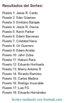 Lista de participantes: Carlos Medina, Cristobal Nava, Eder Güemes, Eduardo Hernández, Eduardo Horihuela, Edwin Arratia, Edwin Barcenas, Emiliano Barajas, Hokuro Rara, Jahir Zubia, Jesús R. Osuna, Jesús R. Canto, Kevin Parker, Luis FG, Marco Antonio R, Ricardo Ramírez, Rodrigo Insurralde, Uri Guerrero.