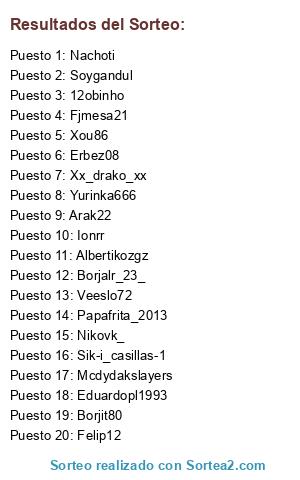 Resultados del sorteo: