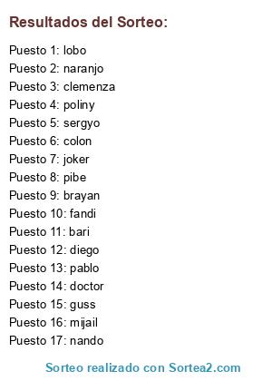 Resultados del sorteo:
